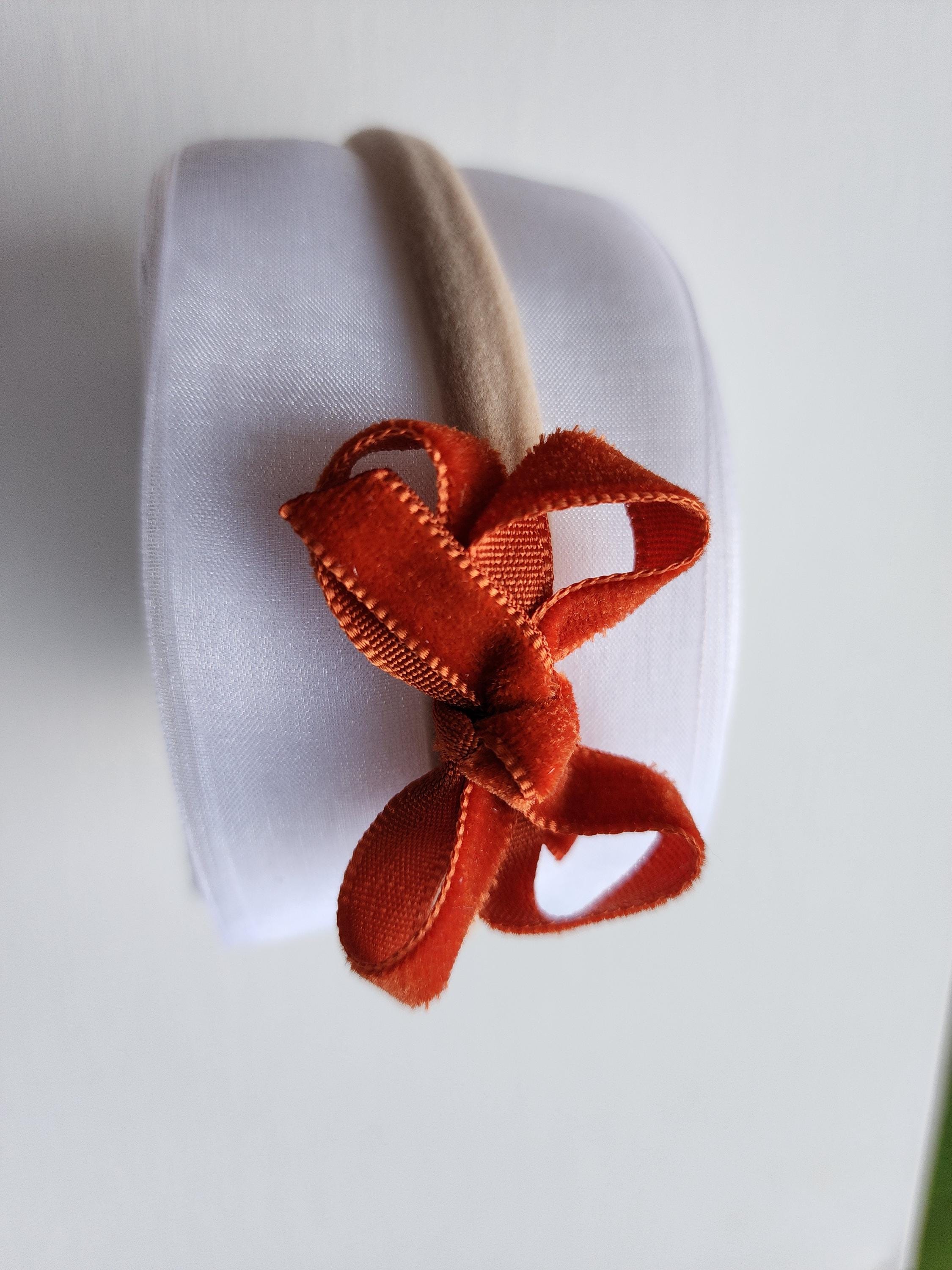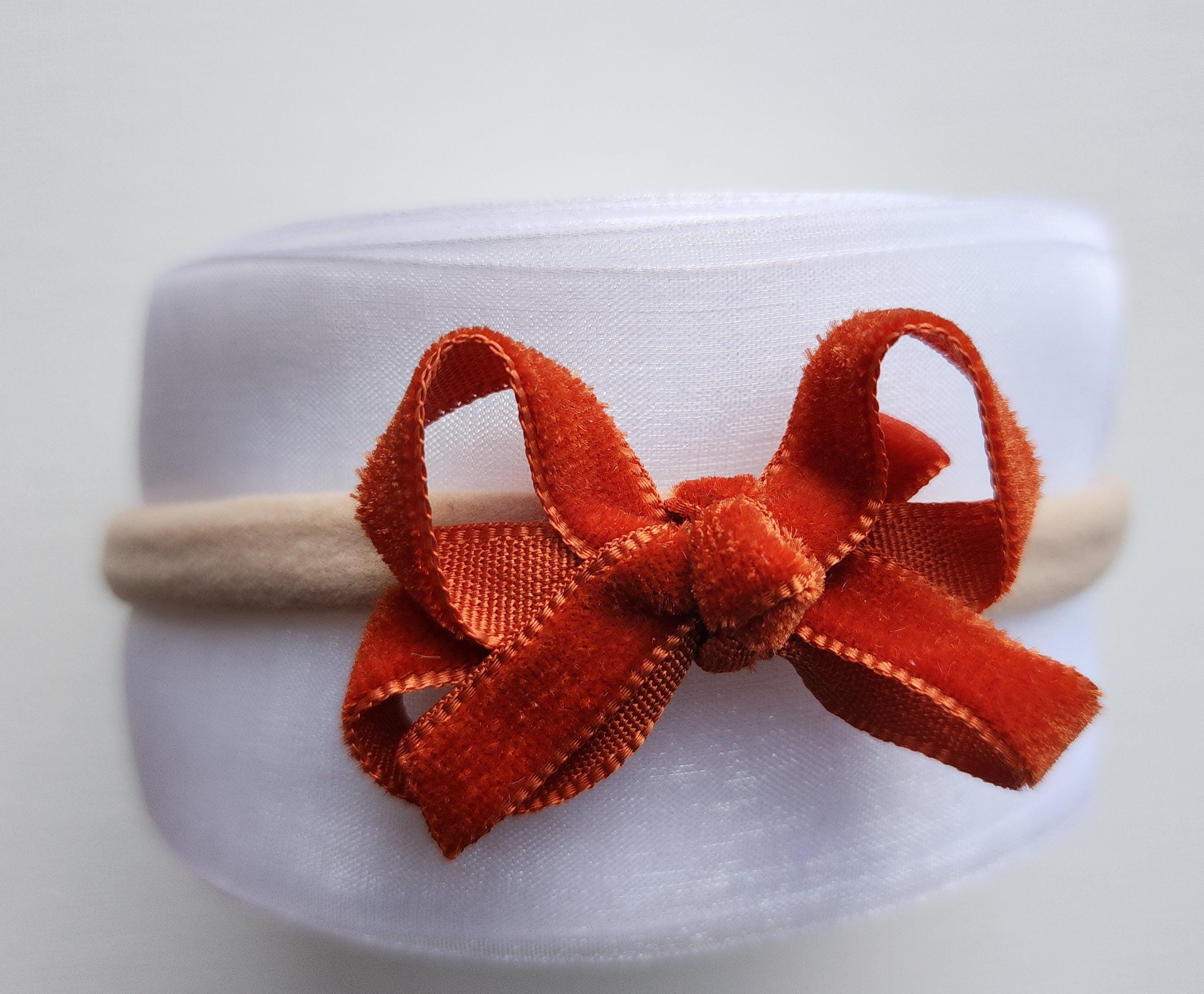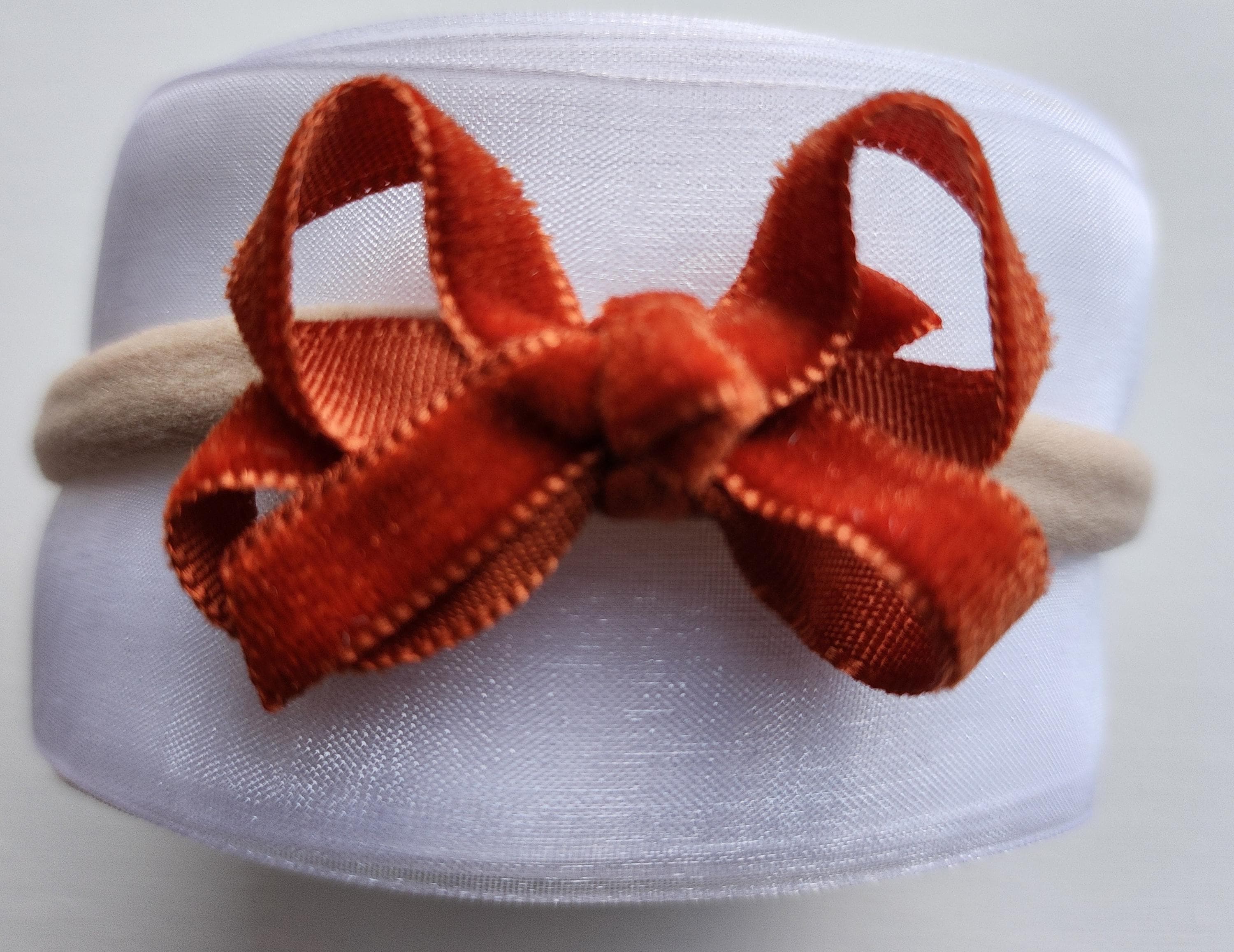 Nylon baby band with 2 inch velvet boutique hairbow attached. Available in several colors