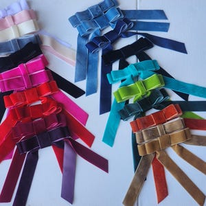 Velvet long bow, 5 inches across, with 7 inch tails.