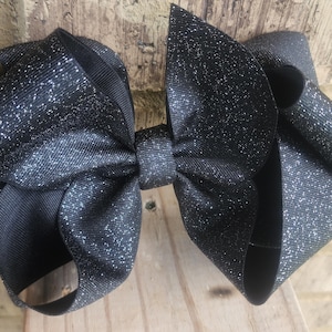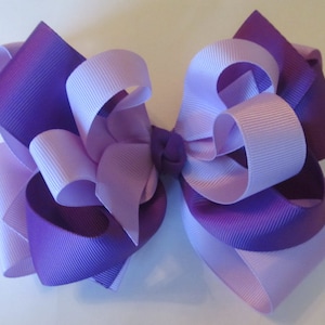 Extra large boutique bow with three layers, and a bling number. Each bow is approximately 8 inches across, and attached to a ribbon lined alligator clip, or French barrette. This beautiful bow has shades of pink.