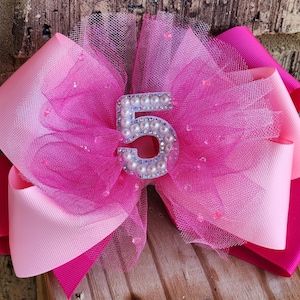 Extra Large Birthday Hair Bow: Pink Bling Number, Boutique Style