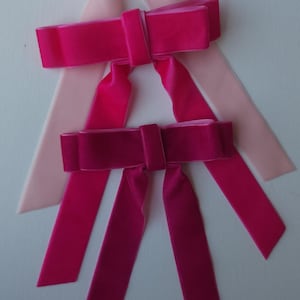 Shabby velvet luxe bow, 5 inches across, and 8 inches long. Perfect for that holiday updo, a cutesy ponytail, or to be worn on the side.