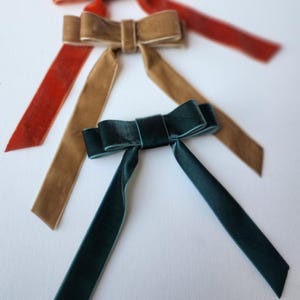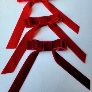 Shabby velvet luxe bow with 7 inch tails. Perfect for that holiday updo, a cutesy ponytail, or to be worn on the side.