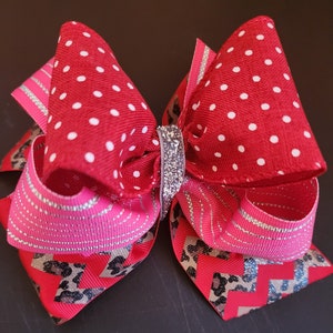 6 inch red and white boutique hair bow with three layers~ hair clip