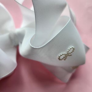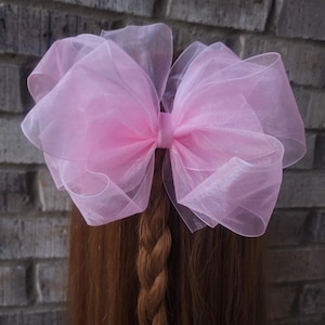 This extra large bow is approximately 8 inches across, and attached to either a ribbon lined alligator clip or French barrette.