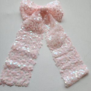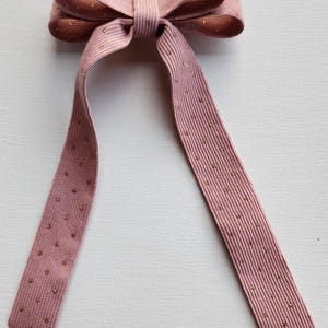 Velvet long bow, 5 inches across, with 7 inch tails.