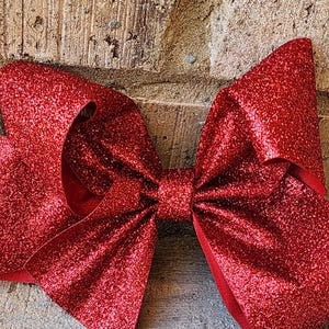 Extra large boutique bow with three layers, and topped with sequin tulle and an initial. This bow is approximately 8 inches across, and attached to a ribbon lined alligator clip, or French barrette