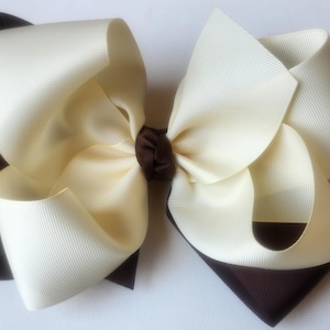 Extra large double layer bow... 8" Hairbow. Color: brown and mustard
